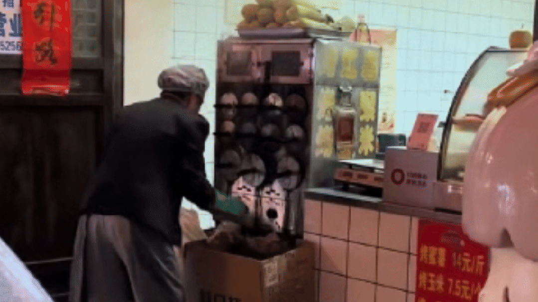 起因是3月2日,山西忻州古城内,一名烤红薯摊主在清理烤炉时,将水含入口中,再向炉内喷射,用来给炉子降温、清洗渗出的糖浆。